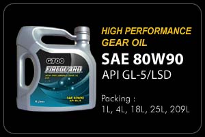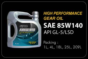 FIREGUARD High Performance Gear Oil is formulated using a unique combination of the hydrocracked base stock with the performance proven, poly-alpha-olefin based synthetic components. Due to the excellent characteristic of the hydrocracked base stock and balanced synthetic components, it exhibits less deposit formation, less viscosity changes during operation and more stable performance in extreme pressure properties if compared with the conventional mineral gear oils. It also provides much enhanced fuel economy and extended drain interval over other gear oils.
