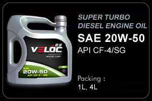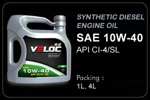 VELOC Synthetic Diesel Turbo Motor Oil is blended from selected base stocks and a high technology core additive package, it is truly a universal heavy duty diesel oil meeting the stringent Global DHD-1 specification. VELOC Synthetic Diesel Turbo Motor Oil is particular suitable for the latest diesel engine equipped with Exhaust Gas Recirculation (EGR).